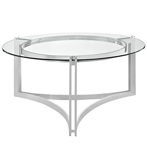 Leave an impression on your surroundings with the Signet coffee table. Designed with a prominently constructed stainless steel frame and round tempered glass top, Signet is a piece of distinction fit for the most noble of environs. Signet’s modern industrial feel makes it the table perfect for office reception areas as well as contemporary home lounge and living spaces. Set Includes: One - Signet stainless steel coffee table Product Dimensions: Overall Product Dimensions: 31"L x 31"W x 15"H Table top thickness: .5"HModern Coffee TablePolished stainless steel base